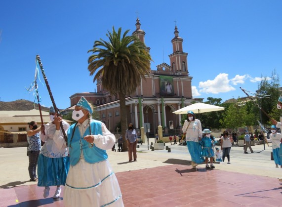 Durante la misa dominical celebrada ayer al aire libre en el frontis del Templo Parroquial, estuvieron presentes los integrantes del Baile Religioso Hijos de Andacollo para conmemorar un año más de vida.