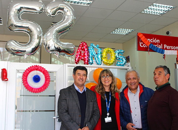 BancoEstado celebró, el pasado miércoles, 52 años de presencia de su sucursal en la comuna de Andacollo, la cual ha sido muy importante para el apoyo financiero y crediticio para todos los miembros de la comuna, quienes han podido acceder a sus servicios, a pesar de las distancias con las capitales regionales. Ésta se ubica en Urmeneta 850.