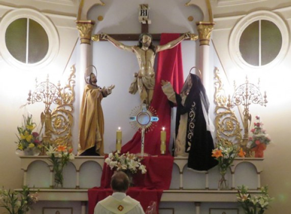 En nuestra comuna la Custodia del Cristo Peregrino fue entregada al Padre Adam Bartyzol, quien la condujo hasta el altar de la capilla lateral de la Crucifixión.