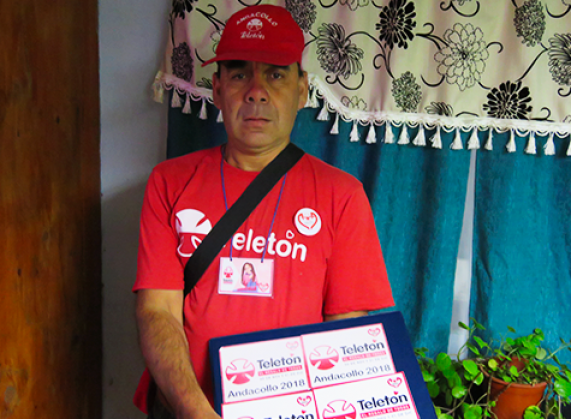 En cuanto a Andacollo, la comuna continúa desarrollando una serie de actividades para recaudar fondos y superar la meta del año anterior, todo con la dirección de la Comisión Teletón de Andacollo y el trabajo incombustible de decenas de voluntarios. Eduardo Aguilera Ossandón es uno de ellos. “El Lalo”, como es conocido popularmente, es un destacado personaje andacollino y vive en sector El Curque. Aguilera sobresale por su gran carisma y su espíritu solidario. Año a año, participa activamente del capítulo local de esta cruzada, recorriendo las calles de la comuna vendiendo los números para la rifa. Su esmero y sus pies incansables llegan, inclusive, a los sectores rurales con la meta de reunir hasta el último peso que sirva para ayudar a los niños y niñas que se atienden en los catorce centros que la Teletón tiene en todo el país.