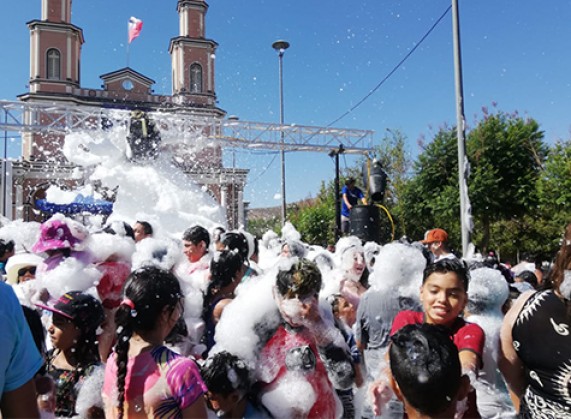 Ayer en la Plaza Pedro Nolasco Videla se desarrolló la Fiesta de la espuma que es una de las actividades más esperadas y concurridas de la temporada de verano en nuestra comuna.