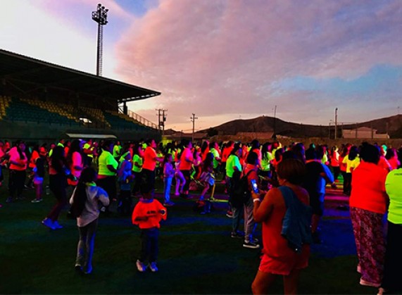 También por tercer año consecutivo se efectúo la zumba flúor en el Estadio Municipal. Esta zumba    2020 recibió a decenas de andacollinas y andacollinos que llegaron hasta el principal reducto deportivo de la comuna para disfrutar del baile, música, concursos, sorpresas y los colores fluorescentes que se podían ver en la noche andacollina.