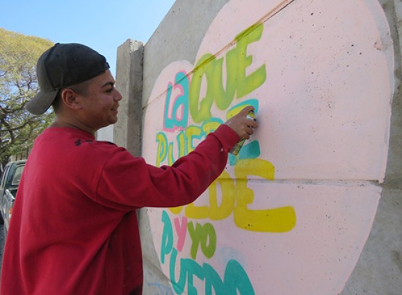Joven andacollino entrega mensajes positivos a través de los grafitis