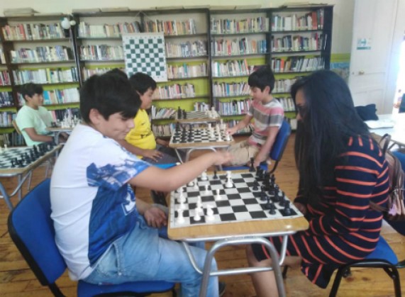Cecilia Aguirre, encargada de la Biblioteca nos explica que han organizado talleres de ajedrez para niños y adultos, cuyas clases son impartidas por Sebastián Araya. Las sesiones destinadas a los menores de entre 8 a 14 años son los días lunes y viernes, mientras que los adultos asisten el día miércoles.