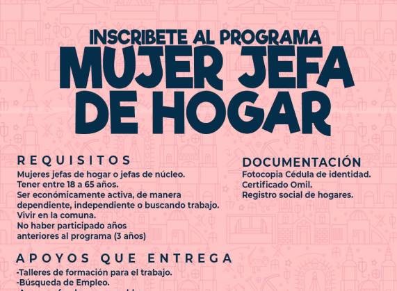 Oficina de la Mujer inicia postulaciones para el Programa Mujeres Jefas de Hogar