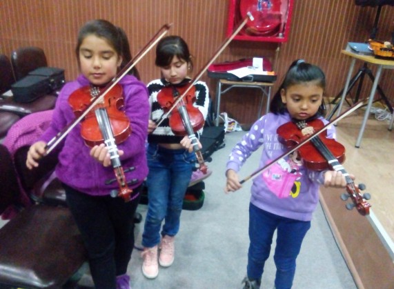 En estos primeros meses, se ha hecho hincapié en que los alumnos conozcan los instrumentos, se inicien en la lectura musical y logren ejecutar melodías en los instrumentos de cuerdas, violines, viola, violonchelo y contrabajo, para luego incorporar los instrumentos de viento.