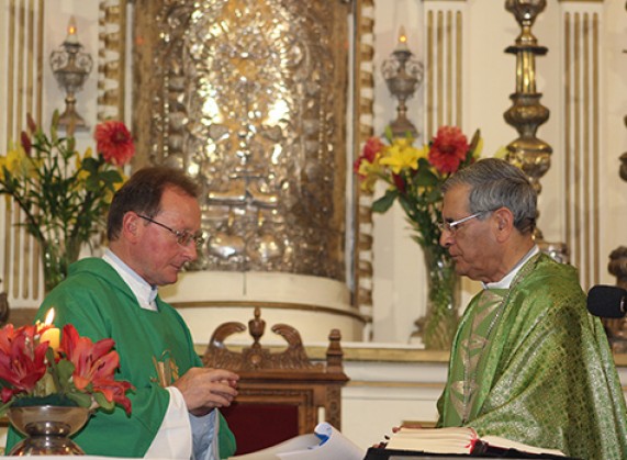 El Misionero Claretiano juró en la ceremonia presidida por el Obispo Emérito Gaspar Quintana, quién en nombre del Arzobispo de la Serena Monseñor René Rebolledo, realizó la lectura del compromiso del nuevo párroco, que desde ahora estará a cargo del resguardo y protección de la imagen de la sagrada Virgen del Rosario de Andacollo, así como sus antecesores los misioneros claretianos quienes por más de cien años han cumplido este rol.
