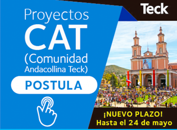 Andacollo. Hasta el 24 de mayo se extendió el plazo de postulación a los Proyectos CAT (Comunidad Andacollina Teck), dirigido a organizaciones sociales y comunitarias de Andacollo que busquen financiamiento para proyectos educativos, ambientales, de salud y bienestar, desarrollo económico, deportes y recreación, arte y cultura, infraestructura y fortalecimiento social.